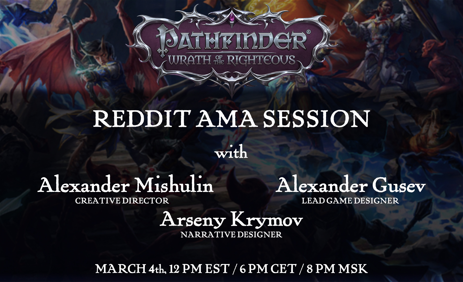 Owlcat Games On Twitter Tomorrow Reddit We Will Answer All Your Game Related Questions In An Ama Session Join Us At 6 Pm Cet 12 Pm Est 8 Pm Msk At Https T Co G438yyvq58 Https T Co 2cwmpktbtq Twitter